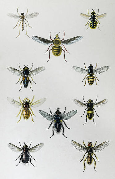 Auch haben einige Schwebfliegen interessante Zeichnungen, die an Hummeln, Wespen oder Bienen erinnern.